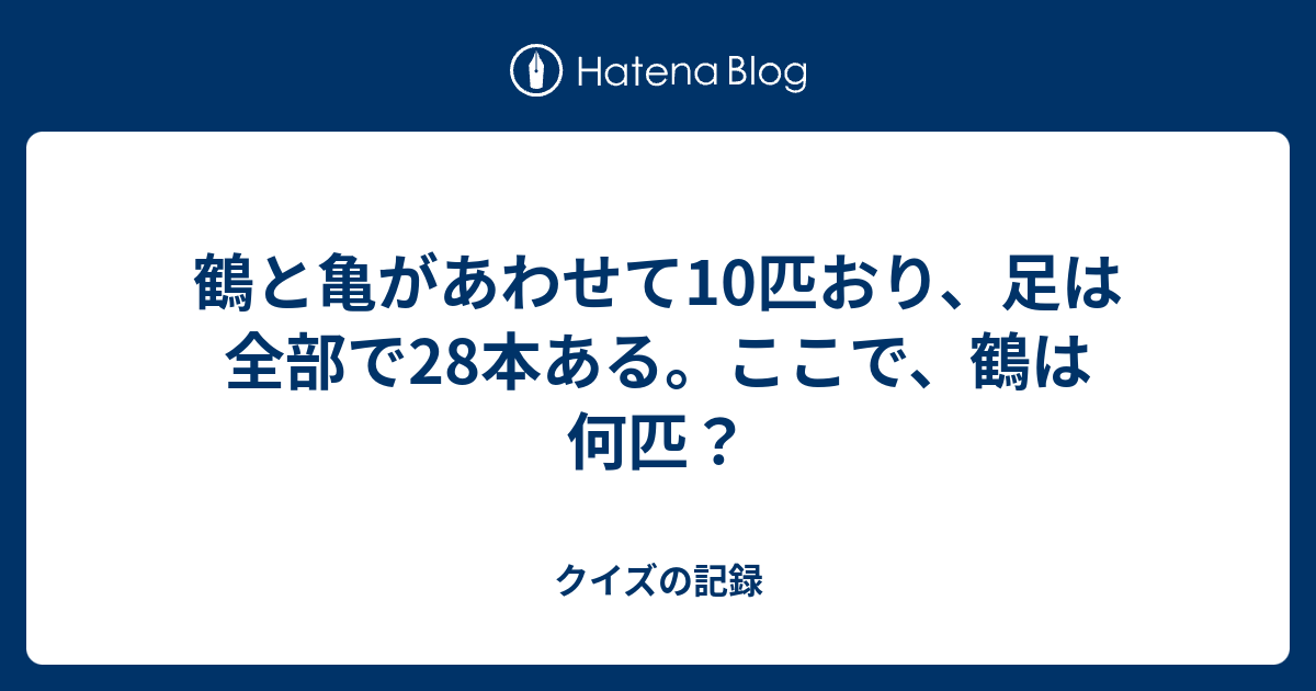 鶴と亀があわせて10匹おり 足は全部で28本ある ここで 鶴は何匹